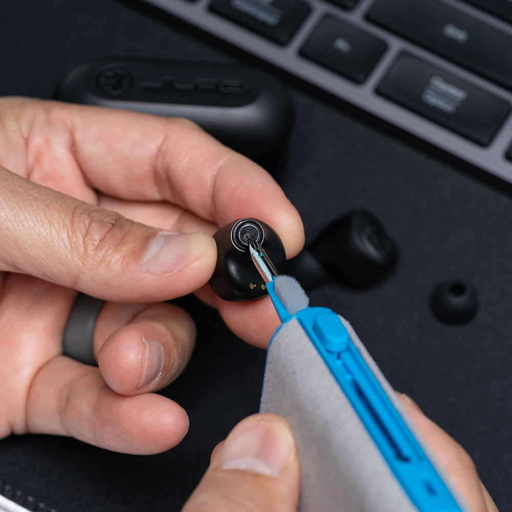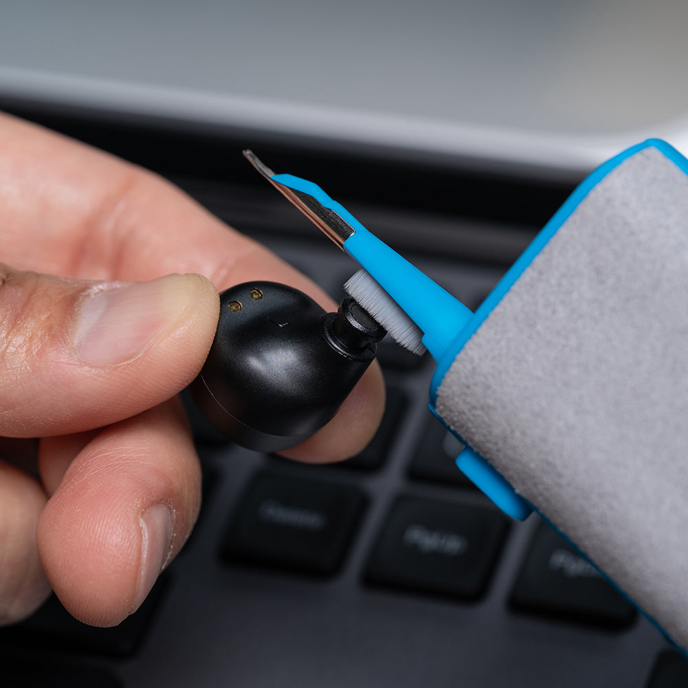 • Brush for cleaning earbuds, charging ports, and other hard to reach places